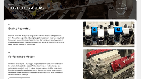 Our Approach:To meet Caro Motorworks’ objectives, we crafted a website on the latest Wix Studio platform, taking full advantage of its robust responsive design and animation capabilities. Every element was designed with an emphasis on establishing Caro’s reputation as a leader in motor restoration and performance tuning.