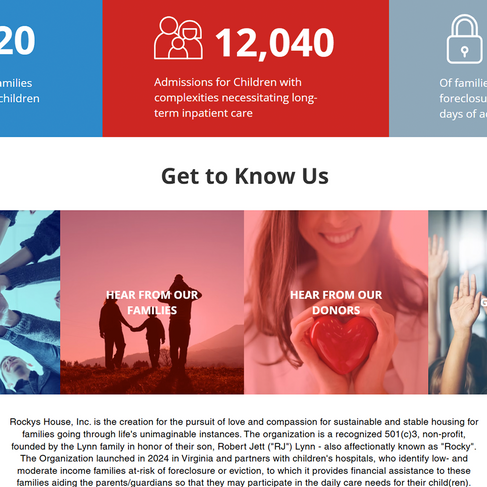 Rocky’s House is a nonprofit organization dedicated to supporting families navigating childhood illness by helping them maintain stable housing during long-term medical treatment. Built in memory of Robert “Rocky” Lynn, the organization’s mission is deeply personal and emotionally powerful. The goal of this project was to translate that mission into a website that clearly communicates impact, builds trust, and makes it easy for supporters to take action.