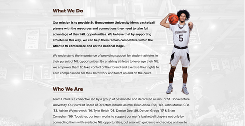 Amplifying the Impact: The redesigned website for Team Unfurl not only serves as an information hub but also amplifies the impact of their mission. By incorporating various membership options, fans can contribute in meaningful ways and directly support the St. Bonaventure Men's basketball players. The captivating video from Coach Schmidt adds an emotional touch, inspiring fans to join the collective and make a difference. Through our web design expertise, we have created a platform that strengthens the bond between the players and their dedicated fan base, fostering a sense of unity and shared purpose.